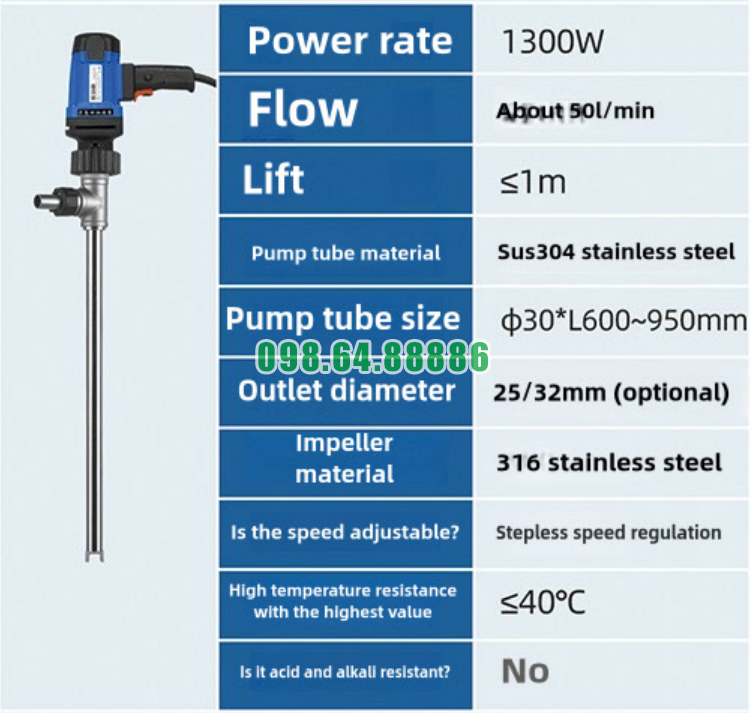 Bơm thùng phuy JDT-1300W-30 SUS304 vận hành êm ái không gây tiếng ồn lớn