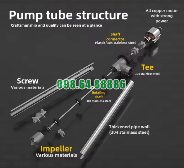 Một trong những lý do khiến Bơm điện hút chất đặc từ thùng phuy JDT-4000W-LQ phù hợp cho thùng phuy 200 lít là máy có cấu tạo đúng với kiểu thùng chứa này. Ống bơm có kích thước Φ45/54 × L950mm, giúp đầu bơm đi xuống sâu trong thùng và tiếp cận tốt phần chất lỏng bên trong.