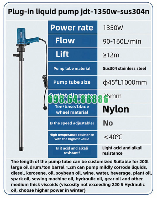 Tại Sao Doanh Nghiệp Tin Dùng Máy Bơm Hút Thùng Phuy Cắm Điện JDT-1350W-SUS304N Lâu Dài