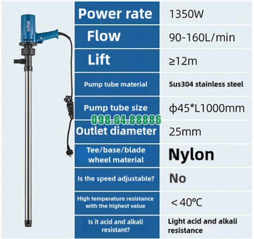 Độ bền vượt trội của Bơm điện hút thùng phuy JDT-1350W-SUS304N trong môi trường công nghiệp đến từ sự kết hợp giữa vật liệu chất lượng cao, thiết kế chắc chắn và khả năng vận hành ổn định. Thiết bị đáp ứng tốt yêu cầu làm việc liên tục trong các điều kiện khắc nghiệt.