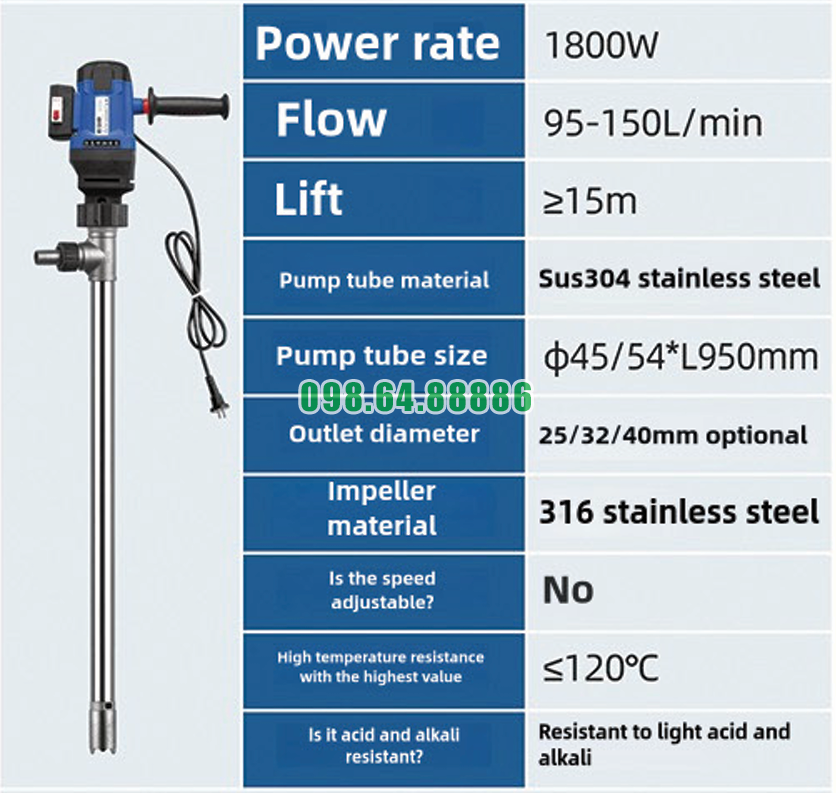 Bơm thùng phuy công nghiệp JDT-1800W-G120