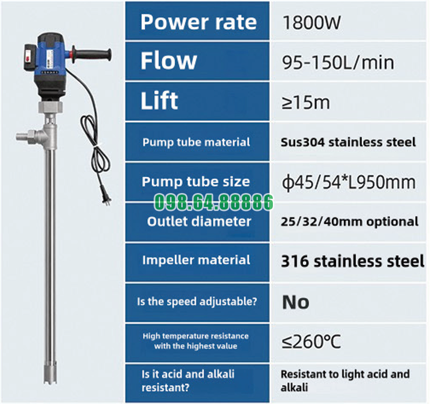 Trong quá trình sang chiết chất lỏng nhiệt độ cao, khả năng tạo áp suất hút ổn định là yếu tố quyết định hiệu quả làm việc của thiết bị. Quy trình tạo áp suất hút của Bơm thùng phuy lỏng nhiệt độ cao JDT-1800W-G260 được thiết kế khoa học, đảm bảo bơm hút nhanh, đều và an toàn ngay cả với các chất lỏng có độ nhớt cao.