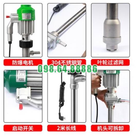 Kích thước ống bơm Φ50 giúp đảm bảo lưu lượng lớn đồng thời vẫn phù hợp với miệng thùng tiêu chuẩn, không gây cản trở khi lắp đặt.